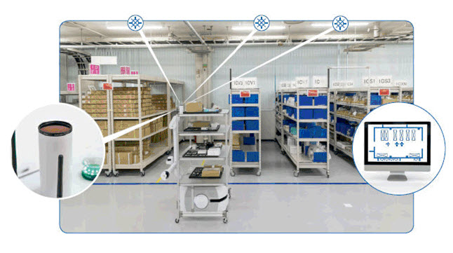 Omron mobile robots are fully safety compliant. They use an onboard laser and other sensors to detect obstacles in their path and, based on speed of travel, trigger an E-stop to prevent vehicle collision.