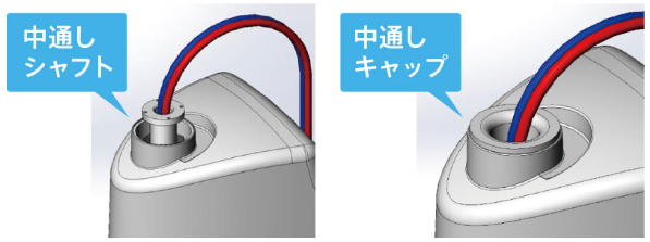 また、本体内部を通すことで動作時の断線の心配を軽減します。