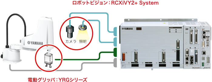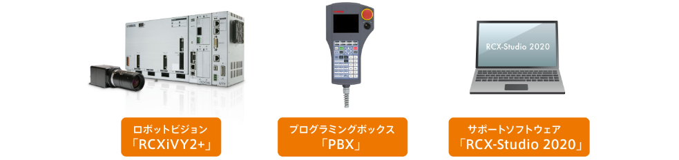 ロボット一体型ビジョンシステム「RCXiVY2+」を使うことで、簡単に画像処理機能を追加でき、高度な生産設備の構築ができます。