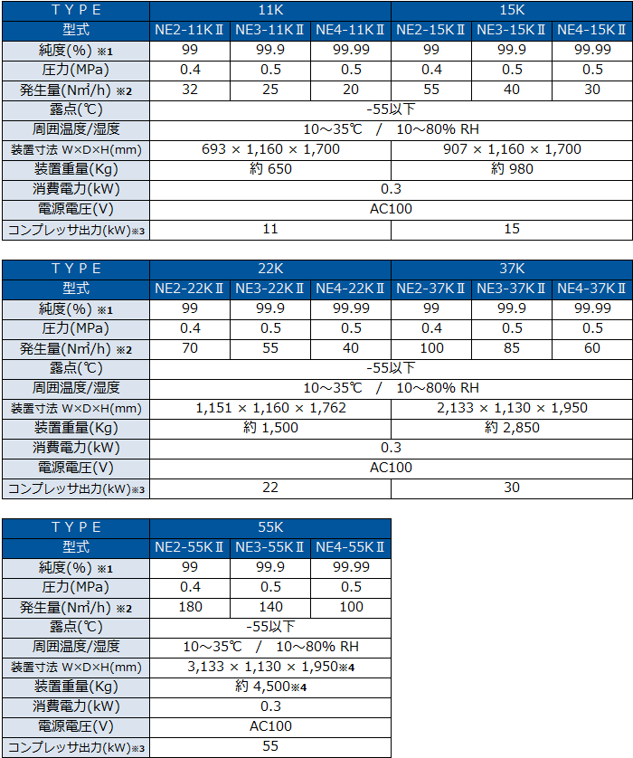 ※3 上記に表記するコンプレッサ出力は弊社推奨コンプレッサの代表的な値です。