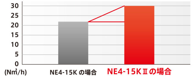 N2発生プロセスの改良により、既存シリーズと同じモータ出力のコンプレッサを使用し、N2ガスの発生量を最大36.5%増加することを実現しました。