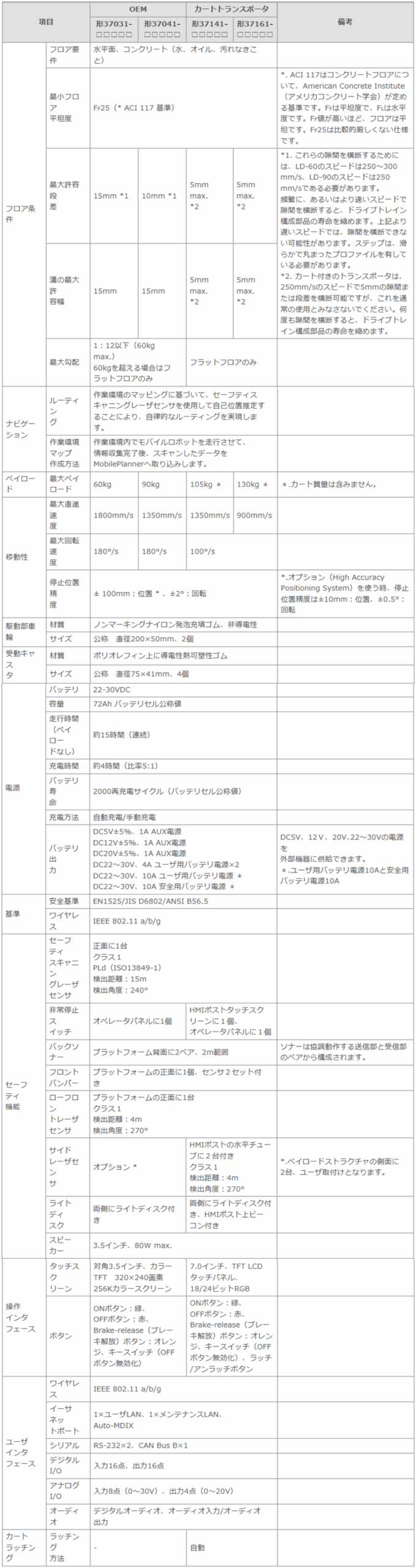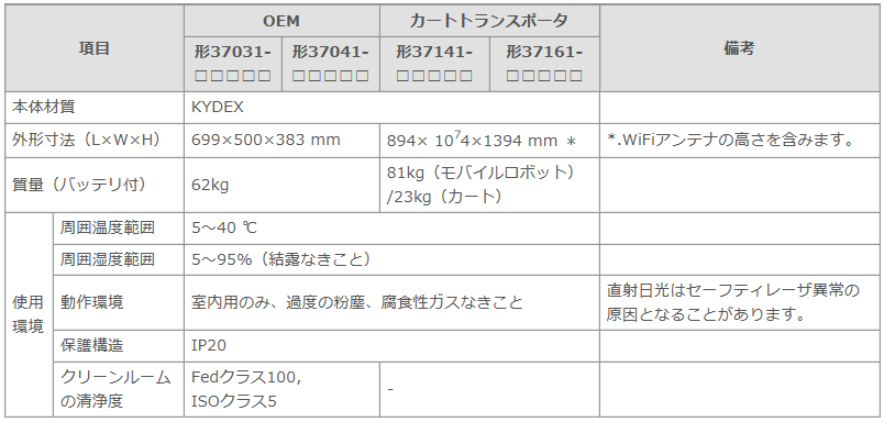 性能仕様:AIV(Autonomous Intelligent Vehicle)