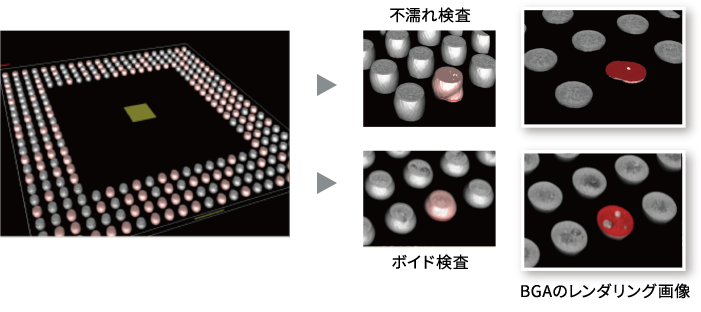 世界最高速のCT撮像技術により、裏面部品の影響なく、BGAのHIP不良、LGA、挿入部品、プレスフィットなど高難度の部品の安定検査をインラインで実現。