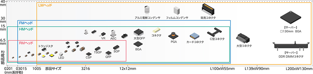 ヘッド交換不要で0201mm~大型部品まで対応