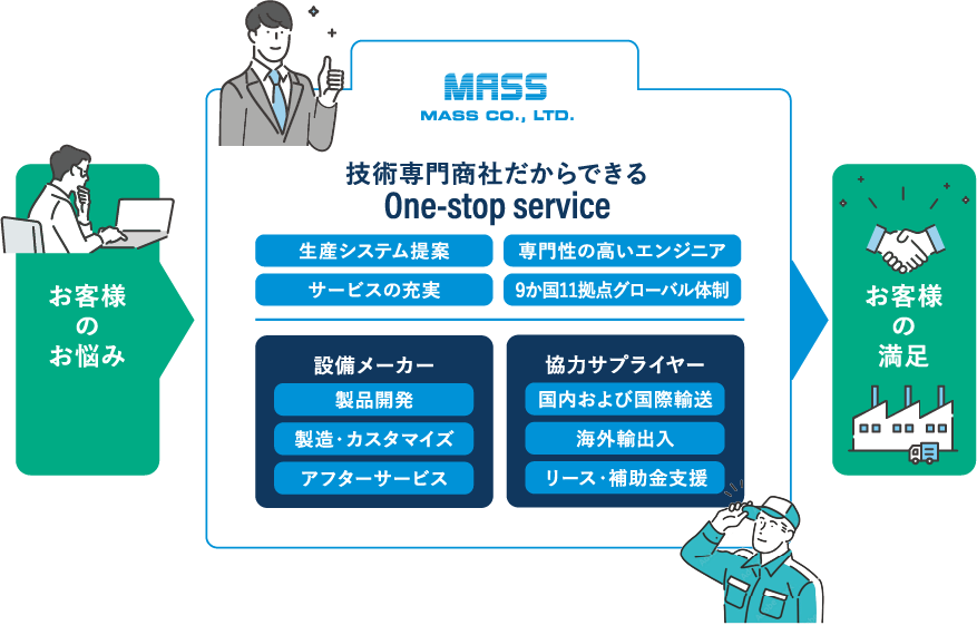 増産や多種多様化、製品の変更など国内海外問わずボーダーレスにサポートします。