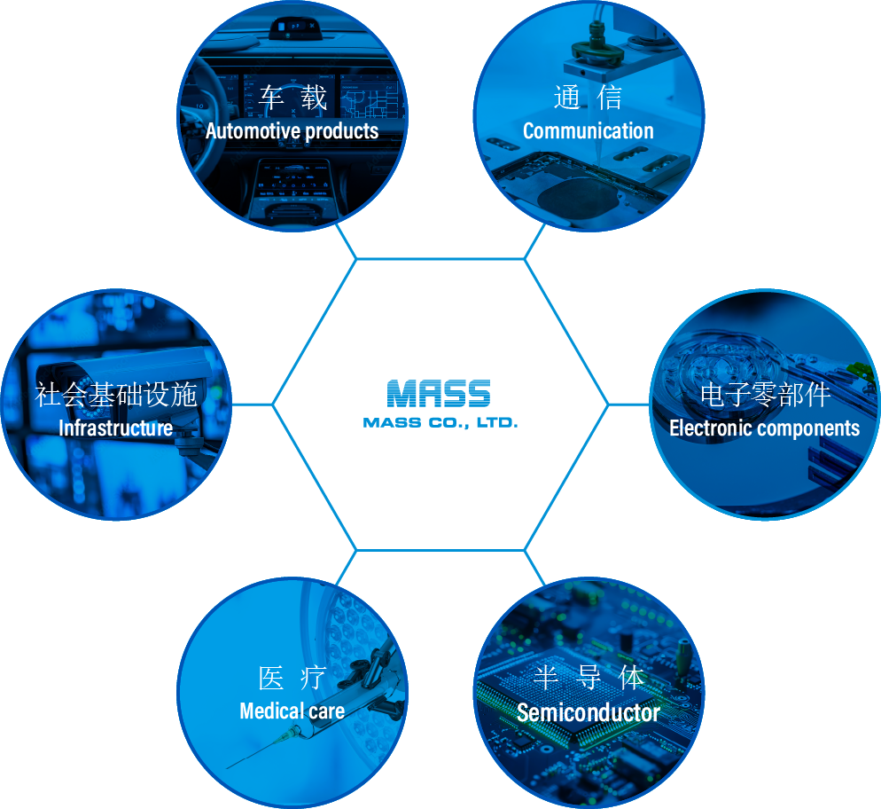 MASS在制造业、汽车业、食品业、制药业、能源业、物流业等众多行业拥有丰富的业务经验。如图所示,我们在众多领域赢得了客户信赖,并根据每位客户的需求提供最佳方案和支持。无论身处哪个行业,我们都是支持生产基地的首选合作伙伴。